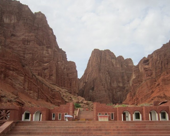 天山神秘大峽谷地處天山山脈南麓、庫車縣城以北64公里的山區(qū),位于217國道1025.8公里處北側(cè),海拔1600米,最高山峰2048米。大峽谷由紅褐色的巨型山體群組成,當(dāng)?shù)厝藗兎Q之為克孜利亞(維吾爾語意“紅色的山崖”)。峽谷南北走向,末端稍向東彎曲,全長5000多米,經(jīng)億萬年的風(fēng)雨剝蝕、山洪沖刷而成,是我國罕見的自然風(fēng)景奇觀。