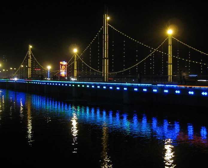 孔雀河橫穿庫爾勒市區(qū),把庫爾勒市分為南北兩半,北面以州市地方單位為主,南面以塔里木勘探開發(fā)指揮部及石油單位為主。在市區(qū)長達(dá)七公里的孔雀河上共有五座橋,有孔雀河大橋、獅子橋、建設(shè)橋、團(tuán)結(jié)橋等。上游的孔雀河大橋是314國道跨越孔雀河上目前最大的橋梁,橋跨150米,寬24。5米,是我國西北地區(qū)最大的一處拱形鋼橋,河面無橋墩,它是孔雀河在庫爾勒市區(qū)的一處重要景觀,是孔雀河濱風(fēng)景旅游帶上一道獨(dú)特風(fēng)景線。近些年庫爾勒市從實(shí)際出發(fā),利用孔雀河穿城而過的優(yōu)勢建設(shè)了孔雀河風(fēng)景旅游帶工程。風(fēng)景帶基礎(chǔ)設(shè)施完善,綠草如茵、鮮花怒放、景色宜人,成為市區(qū)一道亮麗的綠化美化線和旅游風(fēng)景線。一方水土,因風(fēng)雅而美麗;一座城市,因歷史的積淀和教養(yǎng)而文明。版權(quán)所有山東聊城聊之旅國際旅行社有限公司,轉(zhuǎn)載必究!現(xiàn)在的孔雀河市區(qū)段玉水如帶,百步一景。清晨,薄霧輕紗,爽氣怡人;晚間,夕陽鋪水,依稀將人帶入夢中仙境。早晨鍛煉身體的人在這里吐故納新,采天地之精華;傍晚,休閑的人們在這里納涼散步,觀夜景之妙。如潮的人流摩肩接踵,使孔雀河畔洋溢出一種節(jié)日的氣氛。