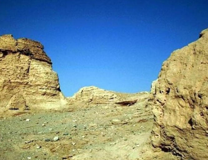 且末古城位于且末縣城西南約6公里的老車爾臣河岸臺地上,海撥款1,273米,遺址地表無植被,已沙化,呈雅丹地貌。在東西長約1公里,南北寬200米的范圍內,地表散布著大量陶片及鐵塊,煉鐵渣,曾采集到數件磨盤石殘塊,玻璃片,料珠。此外,在遺址中心區風蝕地表,尚殘存數間房屋及其他建筑遺址,1985年9月挖掘出的古代毛織品,古尸,遍地尸骨墓室,還有陶片弓箭,證明這是漢軍屯田駐守城邑遺址,古有的城墻全部坍塌于洪水域,還有環城護河遺址。初考證為元宋時期遺址,這里被稱為“車爾臣闊納協海爾”維語意為:且末古城。