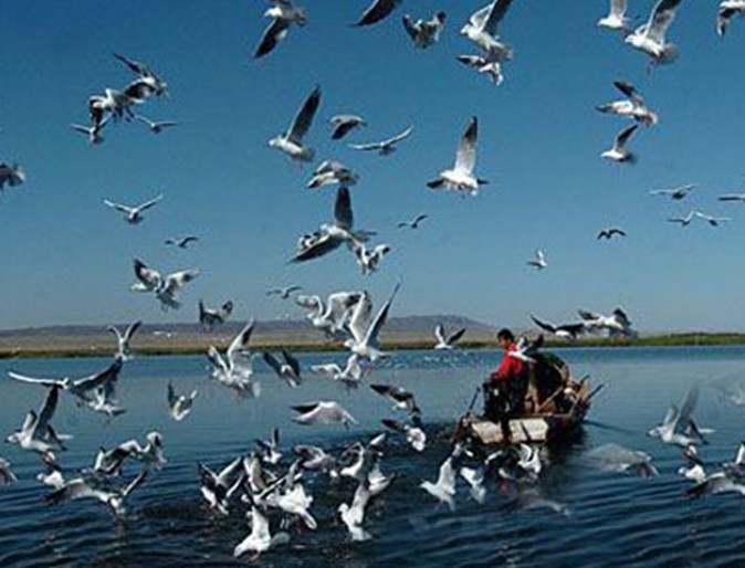 又名“布倫托海”,“福海”。位于準(zhǔn)噶爾盆地北部,福海縣城西北。“布倫托”,突厥語意為“灌木叢生”。這是新疆僅次于博斯騰湖的第二大漁業(yè)基地。由面積 165平方公里的吉力湖(小海子)和面積 730平方公里的烏倫古湖兩個(gè)水域組成。發(fā)源于阿爾泰山的烏倫古河流入其中,為該湖主要水源。湖水平均深度為八米,北岸斷崖,與額爾齊斯河僅距2.1公里,湖盆是由斷層陷落而形成的。烏倫古湖素以“戈壁大海”和鮮美“福海魚”而著稱。從克拉瑪依市出發(fā),沿公路去阿勒泰市,烏倫古湖是必經(jīng)之地。湖區(qū)水質(zhì)肥沃,浮游生物豐富,有浮游植物75種,浮游動(dòng)物10多種,水生維管束植物6種,底棲生物亦多,大、小湖均屬于營(yíng)養(yǎng)型湖泊。主要經(jīng)濟(jì)魚類有:貝加爾雅羅魚、河鱸、斜齒鳊、東方真鳊、圓腹雅羅魚、銀鯽、丁卡等,以前4種產(chǎn)量居多。平均年產(chǎn)量約3000噸,最多年4500噸,占新疆魚產(chǎn)總量1/3以上。由于湖面水位下降,湖濱的沼澤面積逐漸減少,蘆葦產(chǎn)量和質(zhì)量均下降;1972年沼澤面積已減少22平方公里,蘆葦高度由2~4米變?yōu)楝F(xiàn)在的0.5~1米。同時(shí),沙堤、沙灘面積卻日漸增加。1960年以前大湖未見沙堤,1972年沙堤斷續(xù)露出水面。1980年沙堤已連續(xù),寬約400米,最高處露出水面2米。 大湖東部駱駝脖子出口處變窄變淺,正向潟湖方向發(fā)展。從環(huán)境條件看,烏倫古湖可從近20多年的惡性循環(huán)轉(zhuǎn)向今后的良性循環(huán),主要措施是從額爾齊斯河增加引水量,并從烏倫古河揚(yáng)水灌溉湖周草地及湖西南地區(qū)。這樣不僅湖水位可回復(fù),湖水加速循環(huán)后亦可淡化。從額爾齊斯河引水的規(guī)劃工作正在進(jìn)行。