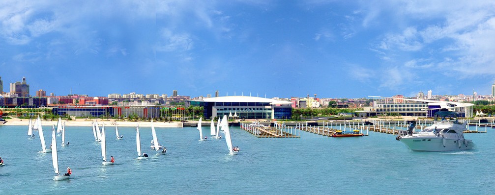 日照市世帆賽基地風景區位于中國日照市萬平口海域,總占地面積1.2平方公里。港池面積40萬平方米。分為淺水區、深水區、特深水區。主要設施有:浮動碼頭6條,停船泊位320個;帆船競賽上下水坡道150米;出海口100米,擋沙提350米、防浪堤450米。陸域面積80萬平方米。