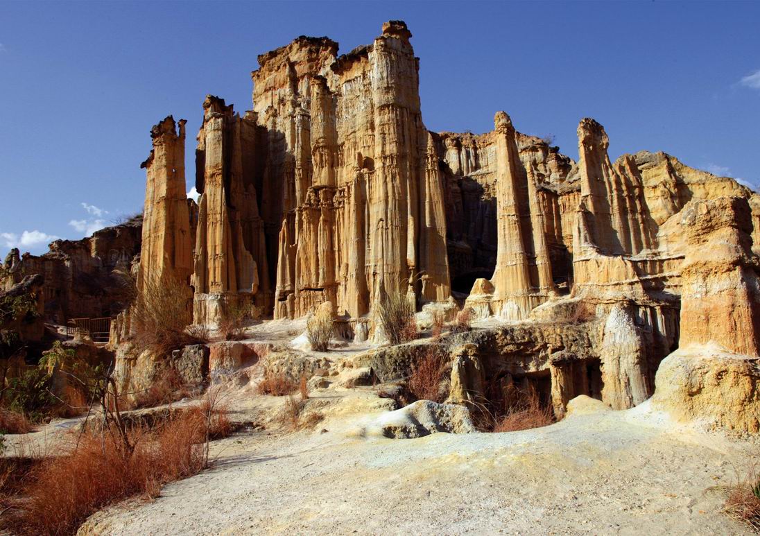 云南土林,分布較廣,其中以元謀縣的物茂土林、班果土林、浪巴鋪土林為佳。它與l陸良彩色沙林、路南石林并稱之為“云南三林”。元謀物茂土林位于元謀縣境內,距縣城32公里,是個不可不去的地方。