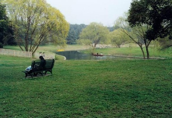 位于公園中部,綠蔭茶室以北,面積9.32萬平方米。周圍種植雪松、香樟、合歡、池杉等各種喬灌木,形成優(yōu)美的林冠線。寬闊的大草坪為青少年提供了理想的野營活動(dòng)場(chǎng)地。