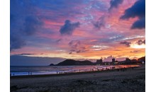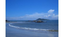 大角灣風(fēng)景名勝區(qū)位于廣東陽江市海陵島西南端,三面群峰拱護,面向浩瀚南海,沙灘長2.5公里,寬100米,因狀似牛角,故名“大角灣”。這里地處南亞熱帶,全年日照時間長,年平均氣溫22.8℃,水溫23.5℃,降雨量1816毫米,年晴天數(shù)310天,四季氣侯宜人,素以陽光燦爛明媚,沙質(zhì)均勻松軟,海水清澈純凈,空氣清新純潔而著稱,各類質(zhì)素均達國際一類(級)標準,又因沙灘寬闊平坦。
