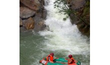 碧溪漂流,位于飛來峽庫區之內,南鄰廣州80公里,北走英德城30分鐘,與北江一水相連,與飛霞古洞、黎溪豐盛古寺、英德寶晶宮、英西峰林連成一線。它起點于碧溪瀑布,俯沖6公里長,九曲十八彎的急流,蜿蜒曲折,水流湍急。碧溪漂流河道全長六公里,起點于“飛流直下三千尺”的“碧溪瀑布”內,總落差220多米,最大落差二十幾米,全程漂流需要90多分鐘。