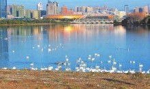 天鵝湖國家城市濕地公園,位于三門峽市東西城區之間的生態區內,現有面積8850畝,其中陸地6150畝,水面、灘涂2700畝,核心景區包括雙龍湖白天鵝觀賞區、陜州古城和沿黃生態林帶三部分,是一處融生態、文化和人文地理于一體的自然山水景區。