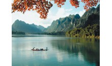 瑤家兩廣界河竹排游景區,位于連山縣城西南部9公里,有連山八景之一的瑤嶺平湖,縣城到景區僅需10分鐘車程。竹排游景區于1999年5月建成以后,深受廣大游客歡迎,瑤山風光秀麗,景色迷人,更有“好女在瑤”之說,參與瑤家竹排游,準讓人盡興其中。一年四季,迷人的景色盡在這十里瑤嶺平湖中:春游可看“一湖春水綠,兩岸杜鵑紅”,夏游可見:“湖中魚戲水,山上鳥歡歌”。