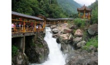 天目大峽谷,地處浙江臨安,緊鄰原始森林大樹王國西天目山。石谷地貌奇特,野趣濃郁,以森林、奇石、碧潭、飛瀑、火山口、冰川遺跡構成一條壯觀的山野長廊。谷內千姿百態的巨石比比皆是,自天目山上直瀉谷底。天然的迎客石、官帽石、青蛙石、飛來石,惟妙惟肖,呼之欲出。10噸至4000噸的巨石有5000多塊。最高的官帽石30多米,面積最大的八仙臺能站立100余人,最重的飛來石3987噸。