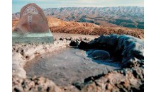 克拉瑪依泥火山位于獨(dú)山子北部的一個(gè)山峰上,主要有兩個(gè)噴出口兩者相距約100余米,較大的一個(gè)噴口直徑約60厘米,高出地面1米余。噴口內(nèi)是粘稠的泥漿,泥漿呈灰綠色,略帶油氣味,不停的向外翻泥泡,匯集的泥漿沿西南側(cè)的開(kāi)口外溢。涌出的泥流在地表形成錐型丘,底部直徑在10米以上,表面是干裂的泥漿塊。泥火山所在的獨(dú)山子亦很有特色,該山的南北長(zhǎng)約7千米,東西寬約6千米,最高峰1283米,孤立的突兀于傾斜平原之上。