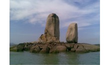半洋石帆又稱石牌洋,在福建平潭島西北看澳村西側500多米的海面,遠遠望去有一個圓盤狀的大礁石,托著一高一低的兩塊碑形海蝕柱。整個礁石象一艘大船兩塊巨石象兩面鼓起的雙帆,似乎正在乘風破浪前進。這是平潭最著名的自然景觀——石牌洋。又稱為“半洋石帆”和“雙帆石”。
