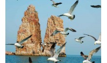 石帆礁海拔204米,是廟島群島的最高點(diǎn),如同巨大的龍角從大海鉆出,直刺云天,山頂上鷗鳥盤旋、奇石林立,島周圍洞、礁、奇石遍布,并列矗立的姊妹峰巍然不動,在風(fēng)浪的烘托之下,遠(yuǎn)遠(yuǎn)望去酷似激流勇進(jìn)的風(fēng)帆。