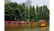 廣州東山湖公園建于1958年,1959年5月1日正式向游人開放,公園面積33.114公頃,其中陸地面積12.2公頃,水體面積20.914公頃。是區級綜合性文化休息公園。園內山水相依,湖水清澈見底。湖中有5個半島和 1個孤島,島間以九曲橋、五孔橋、拱橋相連,與各具特色的亭、廊、榭、閣、花架連為一體。該園以紫荊、柳堤為主景,有喬灌木110種,1萬多株。因此,每當春日,景色十分迷人。