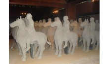 1984年12月,在江蘇徐州東郊的獅子山西麓發現了一組漢代兵馬俑。經過考古人員的全面發掘,這支沉睡于地下兩千多年楚漢軍隊撩開了神秘的面紗。獅子山兵馬俑種類豐富、數量眾多,共有博袖長袍的官員俑、冠幘握兵器的衛士俑、執長器械的發辮俑、足登戰靴和抱弩負弓的甲士俑等10余種4000多件。