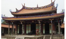 孔廟位于大同區(qū)大龍街,創(chuàng)建于清光緒元年(公元一八七五年)臺灣北部設(shè)置臺北府,當(dāng)府城于光緒五年(公元一八七九年)動工,隨即在城內(nèi)南門內(nèi)建造文武廟,兩座廟皆朝南,文廟在左,武廟在右,即是臺北府的孔廟。 創(chuàng)建期間,在光緒二十年(公元一八九四年)中日甲午戰(zhàn)爭時間,發(fā)生了臺灣割讓給日本,第二年日軍進占臺灣,開始了日據(jù)時期的年代。至光緒三十三年(公元一九0七年)日本人為建立日語學(xué)校,故將孔廟拆除,并在此建立了第一高等女子學(xué)校.