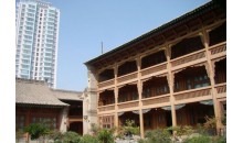 東公館位于甘肅臨夏市城東南角,占地面積50余畝,1945年建成。是原國民黨第四十集團軍副司令、柴達木屯墾督辦馬步青的私邸。館內建筑全系磚木結構,四座正院及附屬設施呈“田”字形布局,四座院落毗鄰處有天井一處,四角有門通向四個院落,天井正北為歇山式三屏并列一字形大影壁,壁心有回族磚雕藝人綻成元的磚雕名作《江山圖》,是河州磚雕藝術的代表.