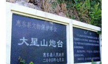 大星山炮臺(tái)位于港口鎮(zhèn)最南端的大星山西南面,是平海諸炮臺(tái)中保存得相當(dāng)完好的炮臺(tái)。東、西、南三面臨海,地勢(shì)險(xiǎn)要,易守難攻,是歷代兵家必爭(zhēng)之地。鴉片戰(zhàn)爭(zhēng)前夕,帝國(guó)主義列強(qiáng)不斷派兵侵略中國(guó),為抵御外來(lái)侵略,清康熙五十六年(1718年),廣東、廣西地方軍務(wù)兼理糧餉兵部右侍郎兼都察院右副都等捐銀在此建造炮臺(tái),筑成軍事要塞。炮臺(tái)用麻石砌筑,周長(zhǎng)295米,平均高3.5米,寬2.55米。