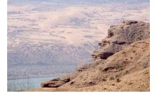 從沙坡頭乘快艇穿越黃河抵達河對岸的“q”形島,穿過大灣村向南迤邐而上,登上一座建有涼亭的小山包,放眼西望,但見500米開外,有一處紅褐色的小山包群,與周圍的沙丘和灰褐色山體形成了強烈的反差。 這紅褐色的山包群南側臨河處有2座突出的山頭,注目遠眺,但見一對雄雌雙獅豁然躍入眼簾:突前的一塊山巖分明是雄獅大而圓的鼻子;往上是棱角分明的眼眶和一雙乍醒徽啟的眼睛;再往上直到山頭的頂部,仿佛是扁平的額頭和卷屈飄逸的毛發。