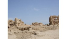雅爾湖古墓群位于交河故城溝西臺地上,與交河城一溝之隔。整個墓區為一狹長臺地,墓葬群面積較大,達10萬平方米。僅于50年代發掘過3座墓葬,發現陪葬文物500余件。主要有陶器、壓花金片飾物、銅花瓣飾物、晶石紅串珠、開元通寶、波斯銀幣等,確定墓葬年代為曲氏高昌至唐代。