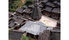 車江侗寨 也稱“千戶侗寨”,是全國侗族人口居住最密集的地方。從榕江縣城過了榕江大橋往北就是車江萬畝大壩。都柳江支流寨蒿河流經筆架山下,連接沿河5個村的侗寨。因河中有巨石三塊,“三寶”因此得名。“三寶”侗寨綿延約有15千米,除非有很充裕的時間,否則很難一一走到。離榕江縣城5千米左右可以看到一座木結構寨門,上面寫著“天下第一侗寨”,這是較有規模的古榕群景區。