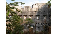 梅州華僑圍屋 又名聯芳樓,位于廣東梅縣西陽鎮白宮新聯村。為旅印尼華僑丘麟祥、丘星祥兄弟建于民國20-23年(1931-1934),占地3000多平方米。該圍屋長近百米,寬四五十米,四周以建筑物環成“圍屋”大院。屋的正面是三個凸起的鐘樓式大門,其上下左右及所有窗戶頂端,都飾以動物和花草浮雕,鐘樓上端則有獅子滾球、雙龍奪寶、雄鷹展翅、天使臨門等塑像。