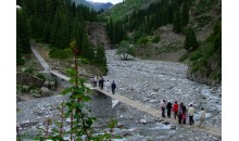 夏提風景區位于溫泉縣哈日布呼鎮西北,阿爾夏提山以西,海拔1620米,由阿爾夏提V型河谷的中游部分河段組成,主要植被為云杉、胡楊、河柳等樹種。地熱溫泉七眼,其中以“仙泉”座落群泉之首,該泉海拔3695米,泉水從一塊石板裂縫中噴涌而出,景象壯觀。水溫38℃~42℃,可治療風濕性關節炎,婦女不育癥等其他疾病,深受游人的歡迎。