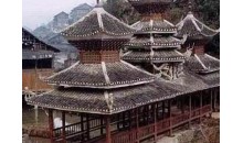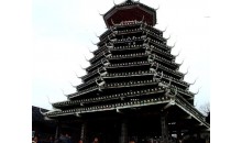 地坪風雨樓 這是貴州省最大、造型最美的風雨橋。長達50多米的地坪風雨橋始建于清光緒二十年即公元1894年,1959年毀于火災,1964年重建。整座橋不用一釘一鉚,而運用杠桿力學原理,將大小不一的柱、枋、檁、凳、欄桿等全部用杉木鑿榫穿枋構成。橋體為長廊式木結構,橋上有一大兩小共三座橋樓。居中的大橋樓是鼓樓式建筑,兩邊的橋樓皆為三層重檐雙斜面屋頂。
