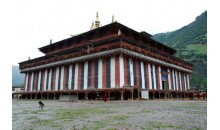 雍布拉康位于澤當(dāng)11公里的扎西次日山上?!坝翰肌币鉃椤澳嘎埂?,因扎西次山形似母鹿而得名,“拉康”意為“神殿”。雍布拉康是西藏歷史上第一座宮殿。據(jù)史書記載始建于公元前二世紀(jì)。松贊干布暑期由宮殿改作寺廟。文成公主初來(lái)西藏時(shí)每到夏季都會(huì)和松贊干布來(lái)這里居住。至五世達(dá)賴時(shí)又在原碉樓式建筑基礎(chǔ)上修了四角攢尖式金頂,并將其改為黃教寺院。