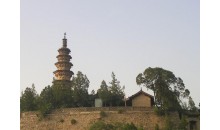 七寶塔在山西平順縣城西北23公里大云寺前。周顯德元年(公元 954年)建。通體用堅硬青石雕造。原為七層,現存五層,高為六米。下三層平面八角形。第一層雕寶裝蓮花、獅子、麒麟、飛馬等。第二層雕伎樂人,體態輕盈,舞姿優美,伴奏者栩栩如生。第三層轉角處雕絞龍柱,回旋盤繞。塔檐下飛鳳、飛仙、共命鳥等變化多姿。