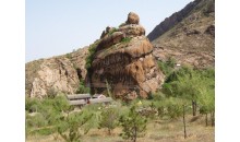 遼代石窟“真寂之寺”即林東后召廟石窟寺。其寺位于遼上京南15公里的山谷中。石窟開鑿在桃石山東南面陡壁上,分中、南、北三窟。窟前是清代續建的喇嘛廟“善福寺”。中窟眉額刻“真寂之寺”四個大字,當為遼代開鑿石窟的題名。“