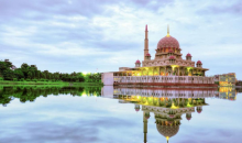 粉紅清真寺(Masjid Putra),仿造摩洛哥卡薩布蘭卡的哈桑清真寺而建,坐落在馬來西亞的新行政中心——太子城(Putrajaya,官方譯名:布城),占地面積5.5公頃,耗資1000萬美元,是馬來西亞最大的清真寺,同時也是東南亞地區最大的水上清真寺。