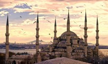 藍色清真寺,原名蘇丹艾哈邁德清真寺,土耳其著名清真寺之一,17世紀初由伊斯蘭世界著名古典建筑師錫南的得意門生Mehmet Aga設計建造,因清真寺內墻壁全部用藍、白兩色的依茲尼克瓷磚裝飾故名,是伊斯坦布爾最重要的標志性建筑之一。