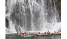 臺山北峰山漂流位于古兜山省級自然保護區內,省級森林公園原始峽谷之中,漂流河段全程4公里,需時1時20分鐘。自然保護區內茂密的原始森林和天然峽谷賦予北峰山漂流與眾不同的特色,集瀑布、深潭、奇石、密林、珍稀動植物、沙灘于一身,在全省獨樹一幟,自然景色之美令人為之驚嘆。全程80多米的落差,密林之下,瀑布飛舟,在峽谷中穿石繞壁,凌波逐浪,融逍遙漂與勇士漂于一體。
