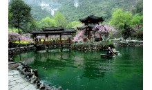 酉陽(yáng)桃花源,位于重慶市酉陽(yáng)土家族苗族自治縣,離酉陽(yáng)縣城不到500米,有一石灰?guī)r溶洞,洞前的桃花溪水自洞內(nèi)流出,清澈見(jiàn)底,嘩嘩地流入泉孔河。