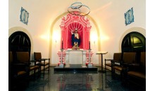 這座精致的小堂于1629年興建,于1740年重建于媽閣炮臺(tái)上, 即在澳門(mén)這個(gè)小城的尾端。當(dāng)時(shí),小教堂巳是一所葡式旅館建筑物的一部份,而旅館則建于炮臺(tái)的地基上,在這座精致的小教堂擺放圣人雕像及花地瑪圣母,伊莎貝皇后的瓷磚圖像。