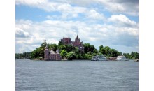 北美洲安大略湖的湖水流出注入圣勞倫斯河,在圣勞倫斯河河灣有大小天然島嶼1865個,人工島嶼1個,被稱作千島湖,又叫圣勞倫斯群島國家公園。有人說加拿大把露出水面1平方米且有一棵樹的地方稱為島。湖(河)中心的分界線將千島湖一分為二,南岸是美國的紐約州,北岸則是加拿大的安大略省。2/3島嶼在加拿大境內,而美國擁有的島嶼大都面積大并有深水水道通往大湖。